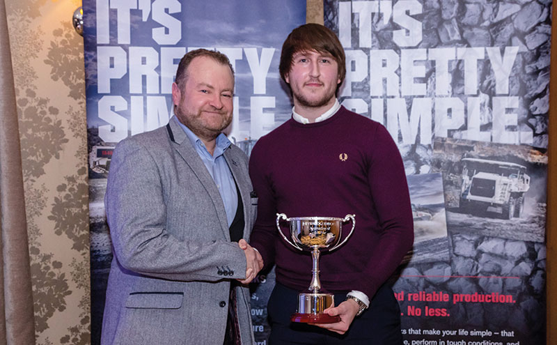 Vice-President-of-Volvo-Rigid-Hauler-and-Terex-Trucks-Articulated-Hauler,-Paul-Douglas,-presenting-Edward-Massey-with-award.